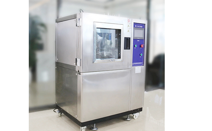 (1)內(nèi)膽尺寸:內(nèi)膽為SUS304不銹鋼板制成,外殼為鍍鋅板靜電噴涂。試驗(yàn)箱大門附觀察窗,大門下部為電氣控制面積,模擬砂塵的滑石粉置于試驗(yàn)箱下部料斗。利用循環(huán)風(fēng)機(jī)和自動(dòng)震擊器將滑石粉通過75微米方孔的網(wǎng)吹入工作室上部,促使試驗(yàn)空間形成高密度塵霧狀,對(duì)試品進(jìn)行試驗(yàn)。帶刮塵器的可視玻璃門,便于觀測(cè)試驗(yàn)箱體內(nèi)被測(cè)試樣狀況試驗(yàn)箱底部采用高品質(zhì)可固定式PU活動(dòng)輪試驗(yàn)箱底部有更換粉塵裝置;
